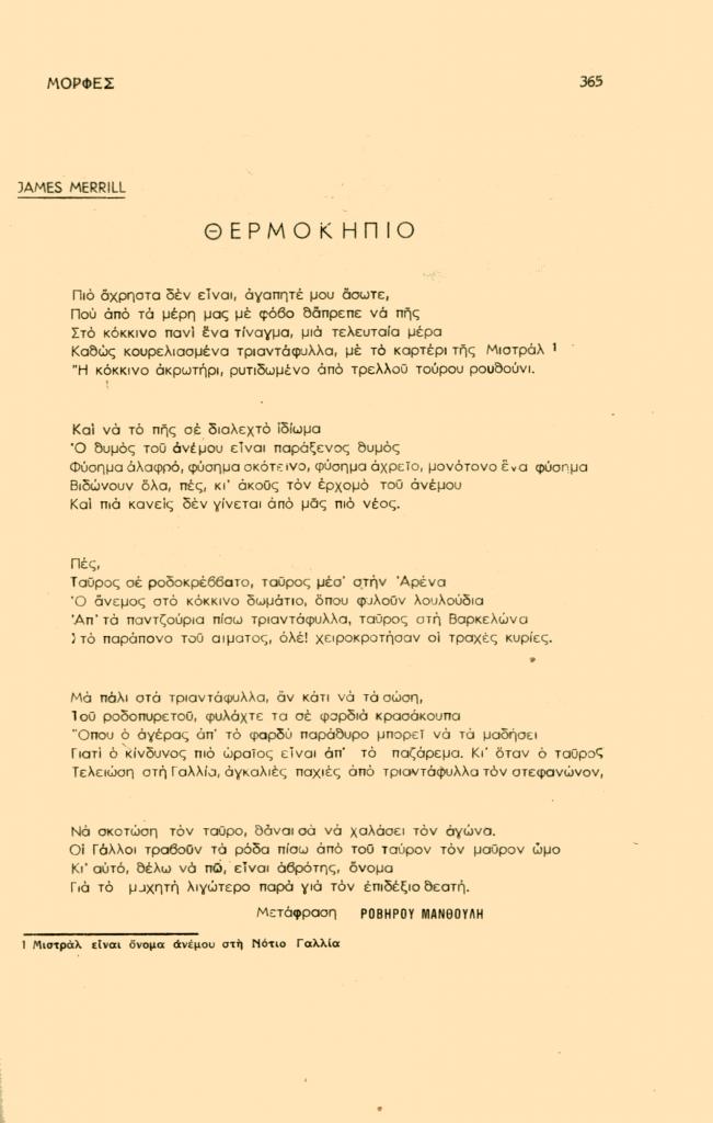 Merill James, «Θερμοκήπιο», Μορφές, τχ. 49 (Οκτώβριος 1950), σ. 365