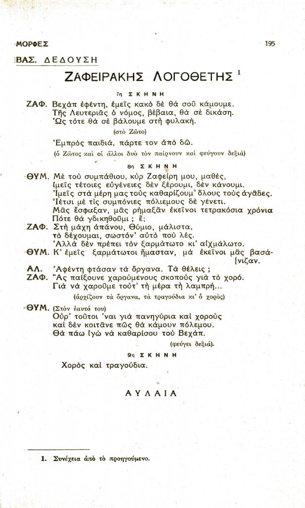 Δεδούσης Βασίλειος, «Ζαφειράκης Λογοθέτης», Μορφές, τχ. 59 (Αύγουστος 1951), σ. 195-200