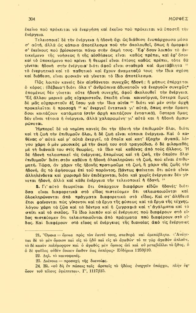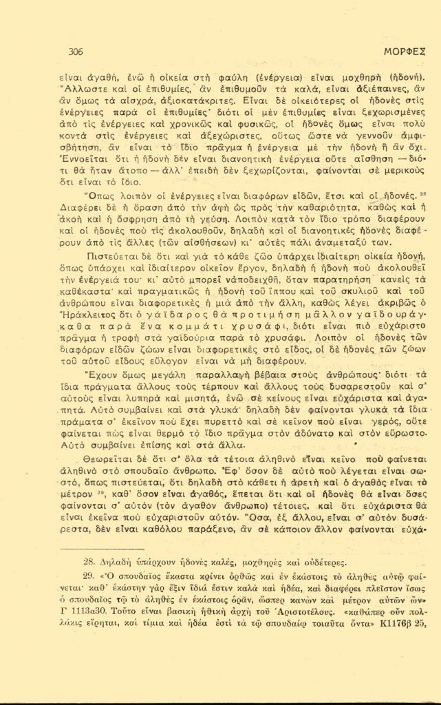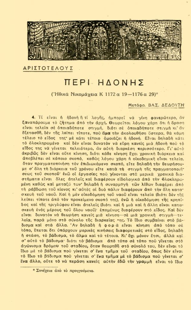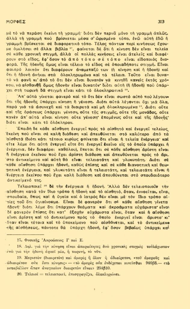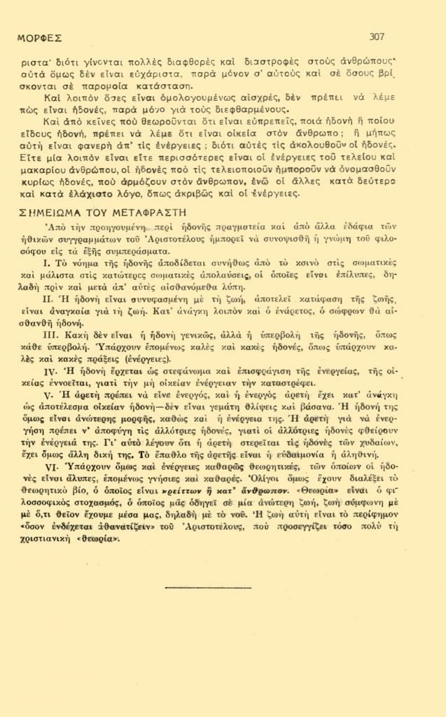 Αριστοτέλης, «Περί ηδονής (Ηθικά Νικομάχεια Κ 1172 a 19-1176 a 29)», Μορφές, τχ. 74 (Νοέμβριος 1952), σ. 302-307