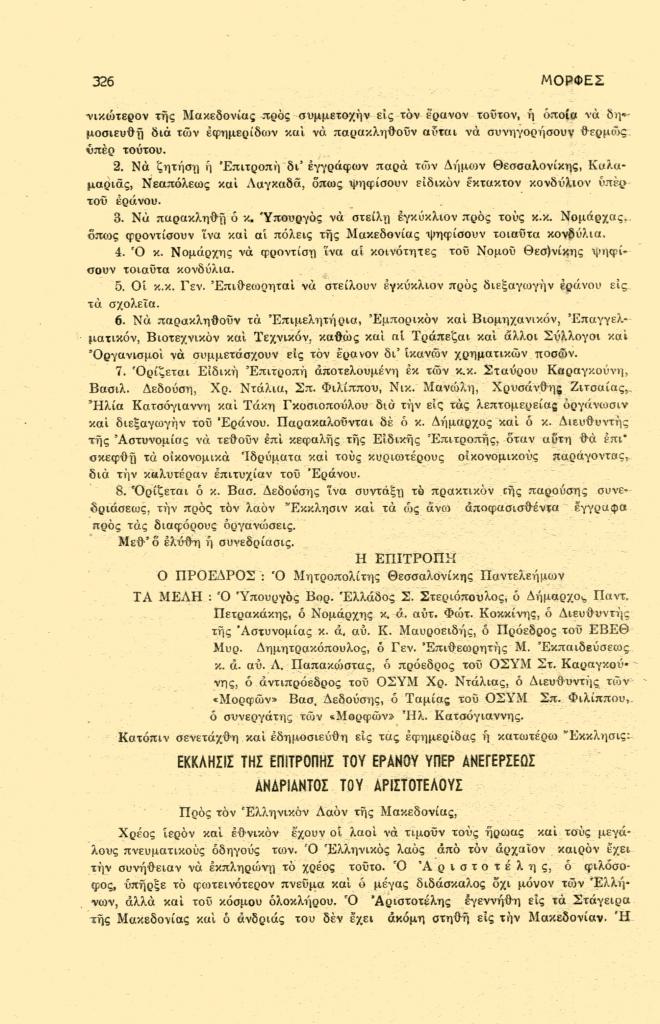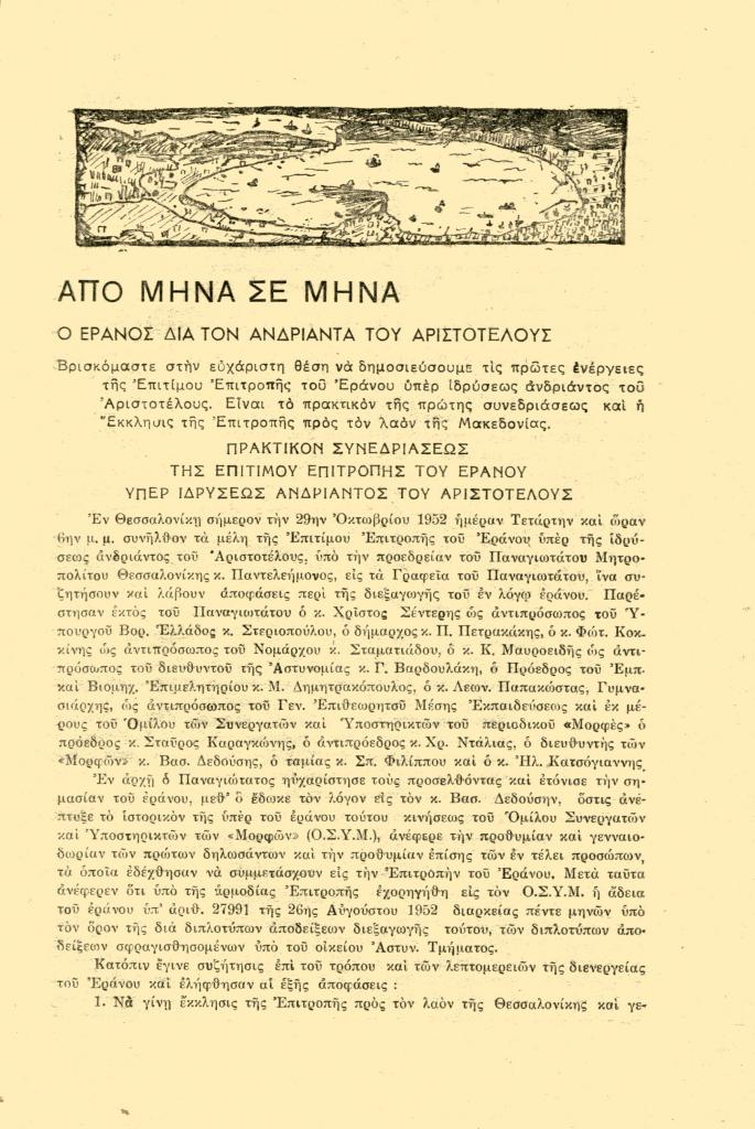 «Από μήνα σε μήνα. Ο έρανος διά τον ανδριάντα του Αριστοτέλους»,