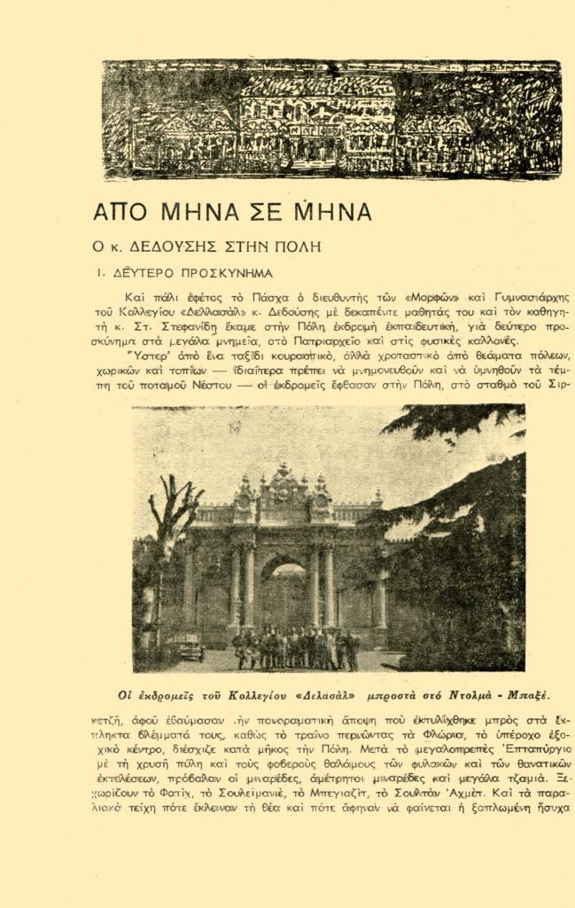 (ανυπόγραφο), «Από μήνα σε μήνα. Ο κ. Δεδούσης στην Πόλη», Μορφές, τχ. 80 (Μάιος 1953), σ. 164-168