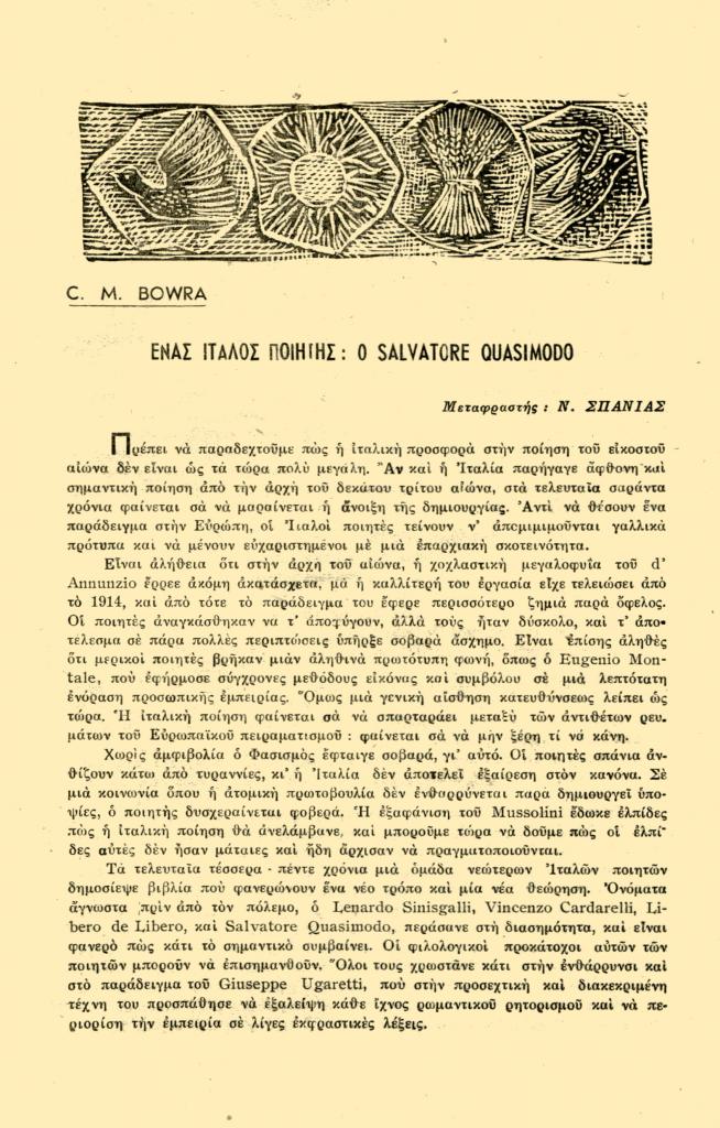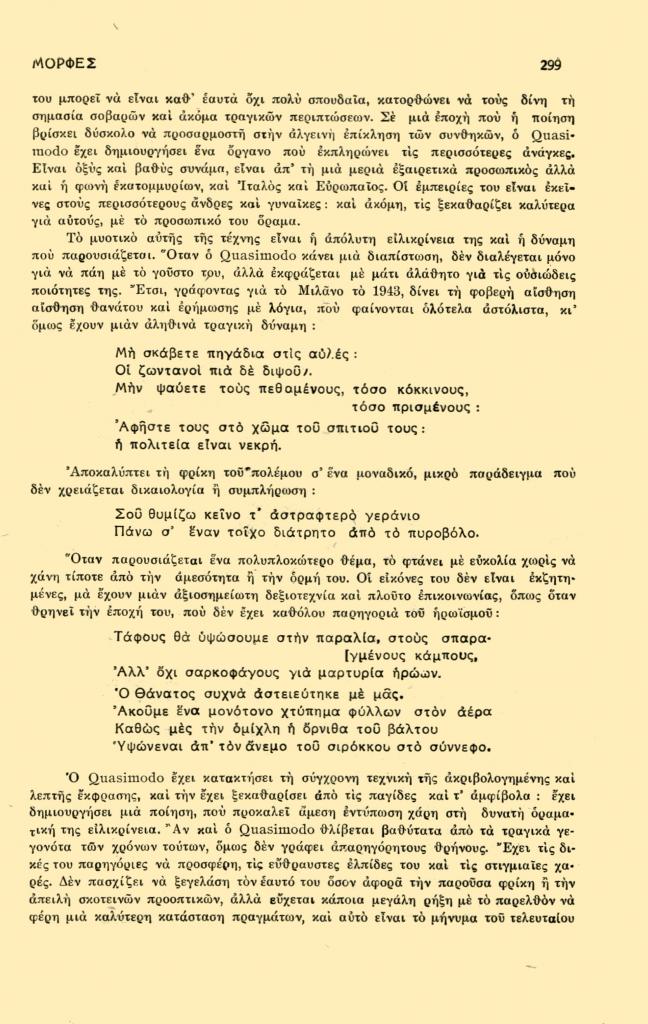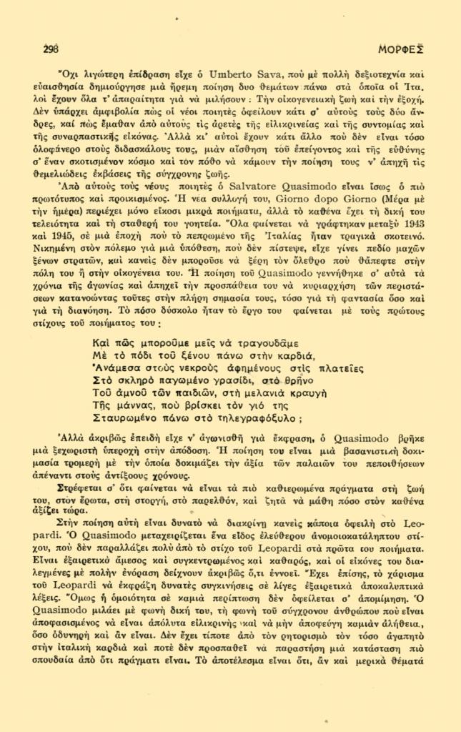 , «Ένας Ιταλός ποιητής: ο Salvatore Quasimodo»,