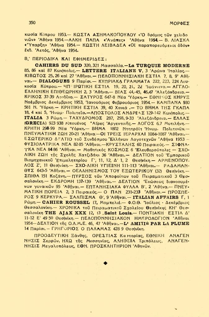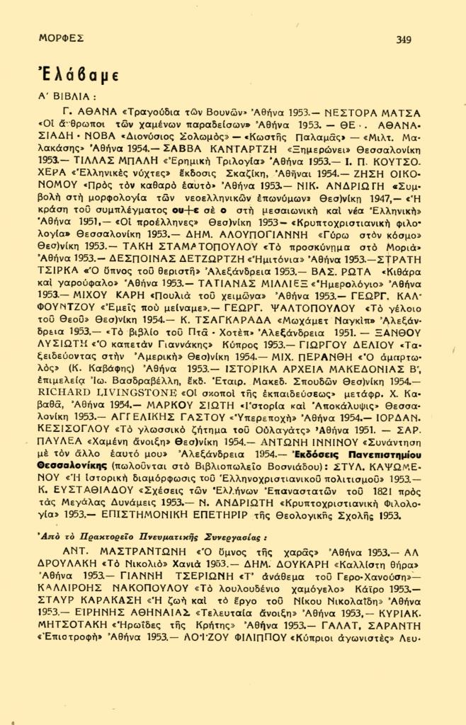 «Ελάβαμε», Μορφές, τχ. 87-88-89 (Ιανουάριος-Φεβρουάριος 1953), σ. 349-350