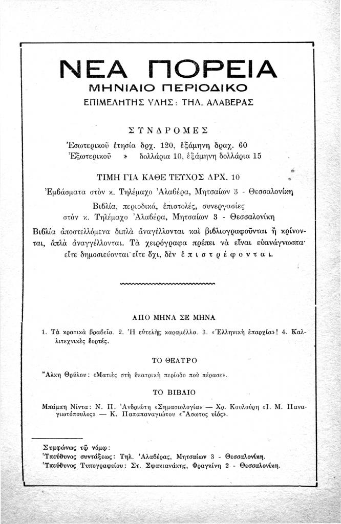 (Ιούλιος-Αύγουστος 1959), σ. (εσώφυλλο)