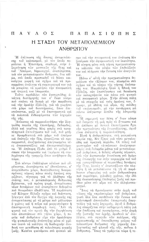 , «Η στάση του μεταπολεμικού ανθρώπου»,
