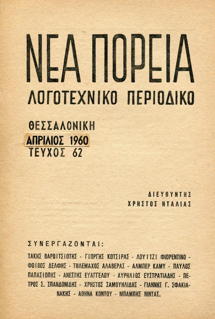 «#», Νέα Πορεία, τόμ. 6, τχ. 62 (Απρίλιος 1960), σ. (εξώφυλλο)