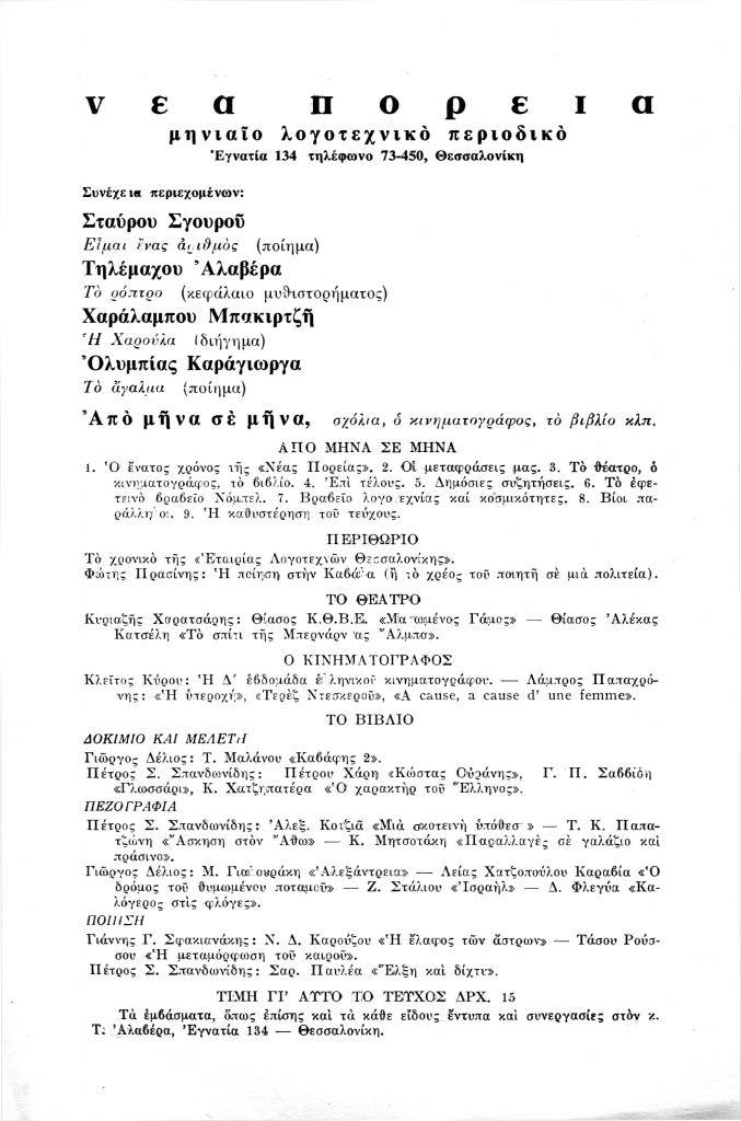 «#», Νέα Πορεία, τόμ. 9, τχ. 104-106 (Οκτώβριος-Δεκέμβριος 1963), σ. (εσώφυλλο)