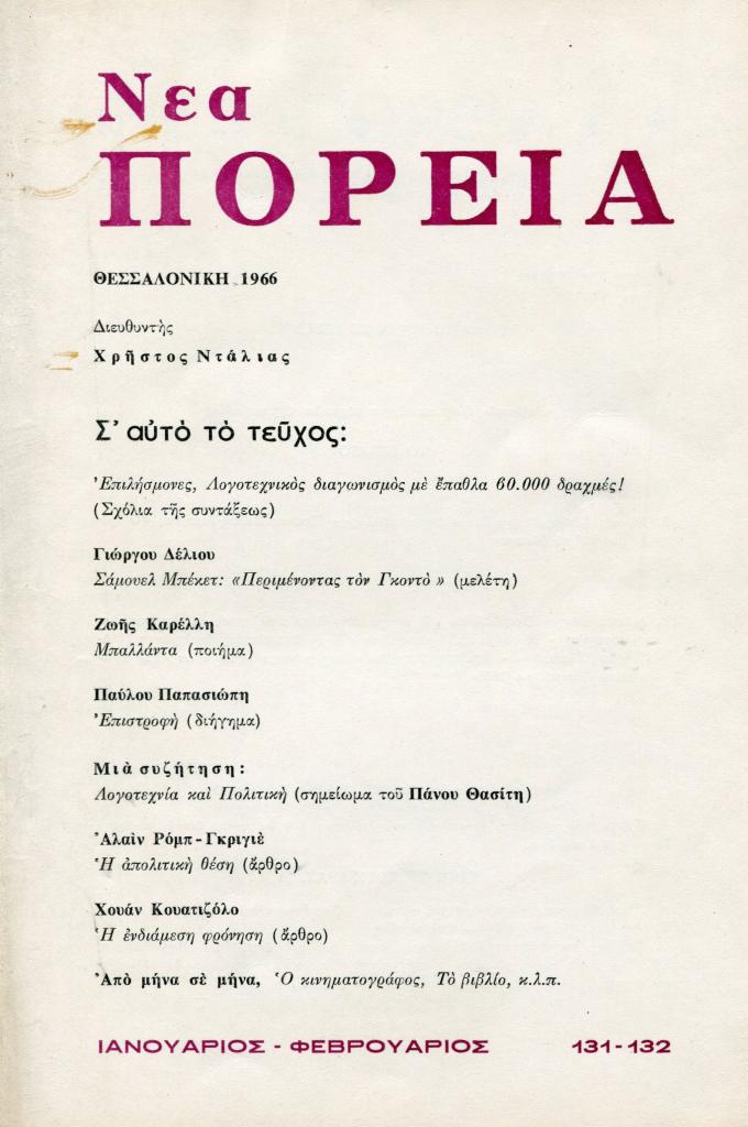«#», Νέα Πορεία, τόμ. 12, τχ. 131-132 (Ιανουάριος-Φεβρουάριος 1966), σ. (εξώφυλλο)