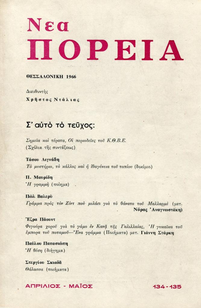 «#», Νέα Πορεία, τόμ. 12, τχ. 134-135 (Απρίλιος-Μάιος 1966), σ. (εξώφυλλο)