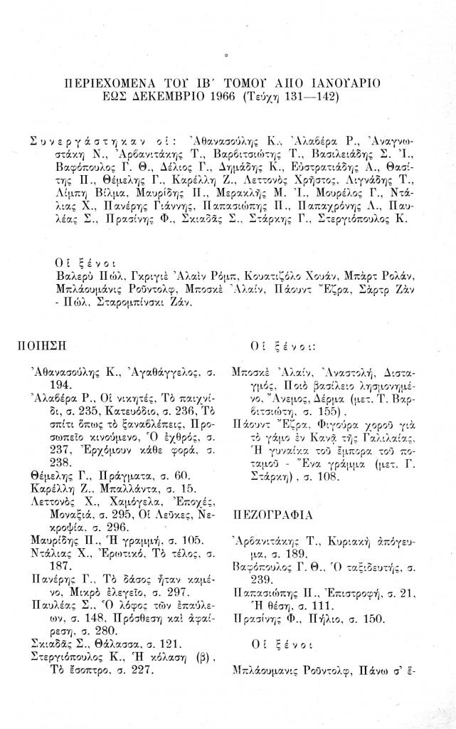 «Περιεχόμενα ΙΒ΄ τόμου (1966)»,