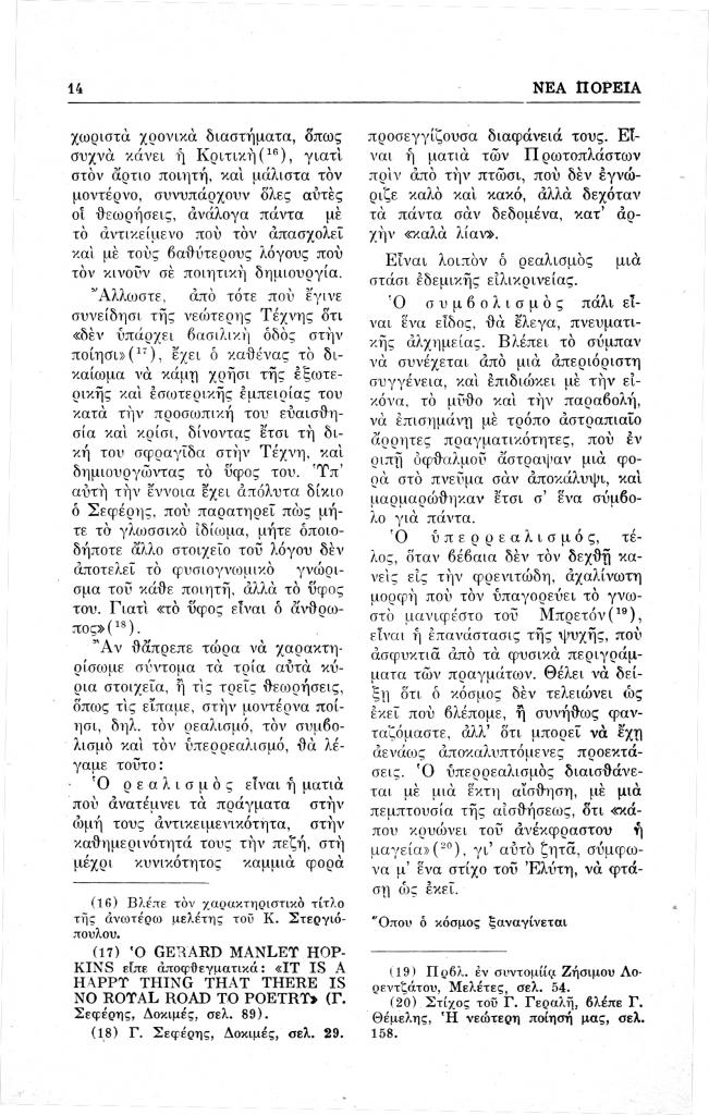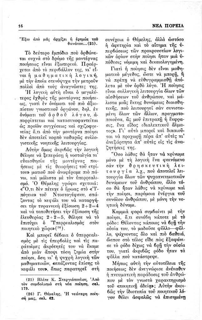 Χαρκιανάκις Στυλιανός Σ., «Ο σύγχρονος άνθρωπος και η μοντέρνα ποίησις», Νέα Πορεία, τόμ. 14, τχ. 155-157 (Ιανουάριος-Μάρτιος 1968), σ. 5-19