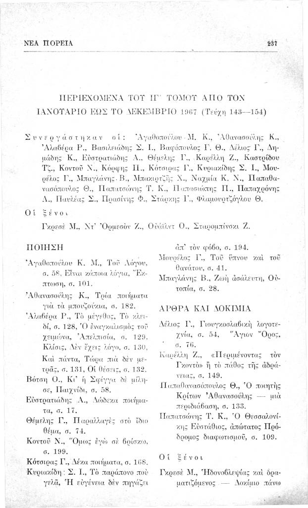 «Περιεχόμενα ΙΓ' τόμου (1967)»,