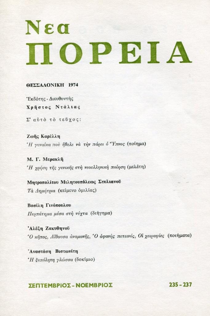 «#», Νέα Πορεία, τόμ. 20, τχ. 235-237 (Σεπτέμβριος-Νοέμβριος 1974), σ. (εξώφυλλο)