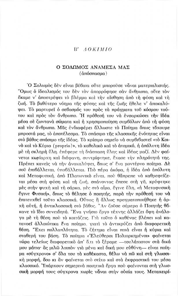 , «Ο Σολωμός ανάμεσά μας [απόσπασμα]»,