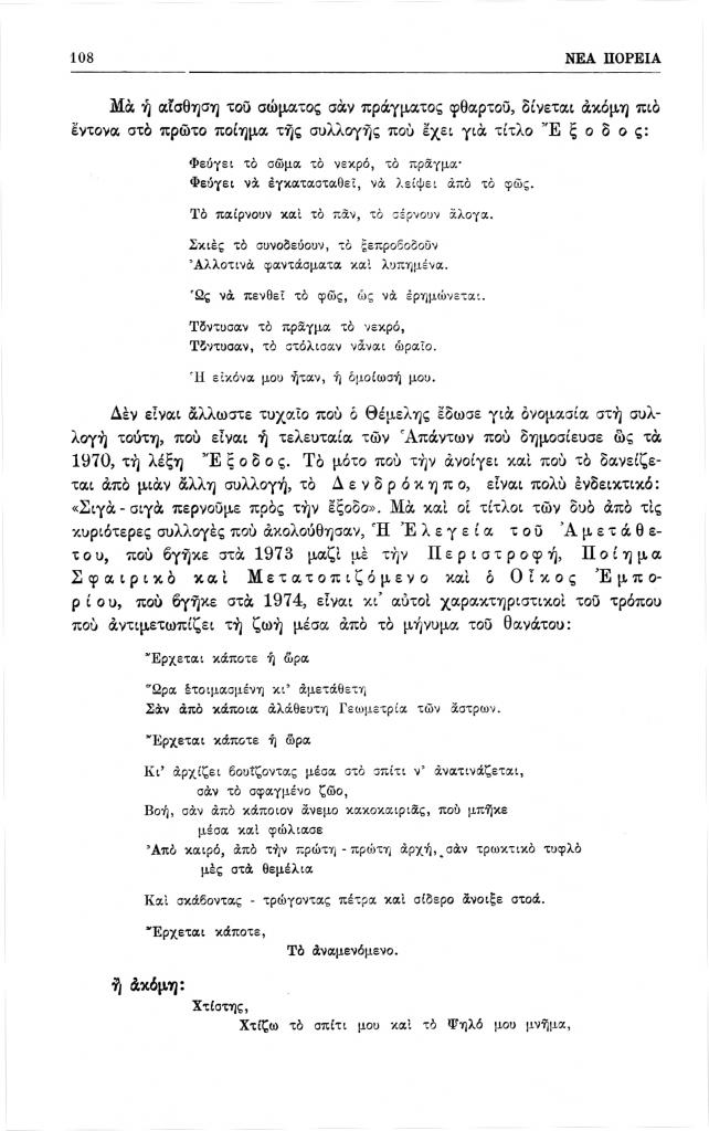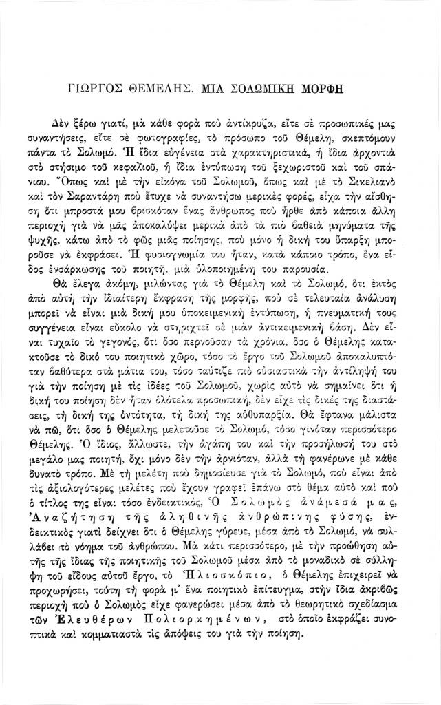 , «Γιώργος Θέμελης. Μια σολωμική μορφή»,