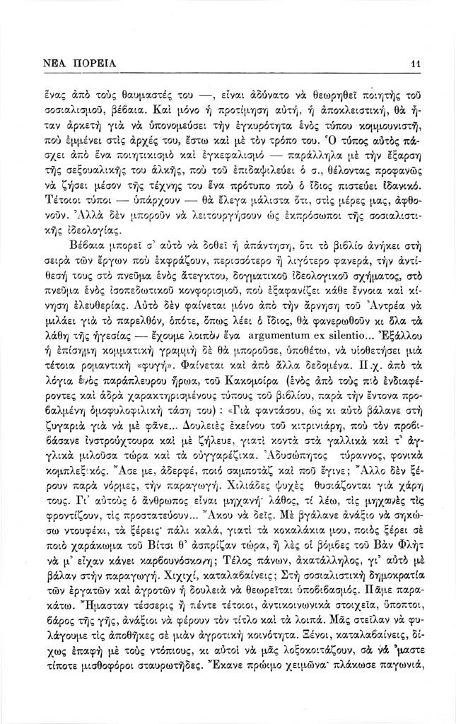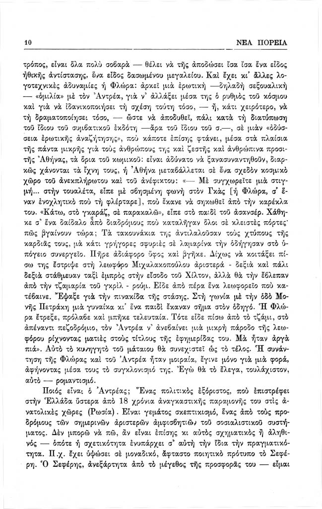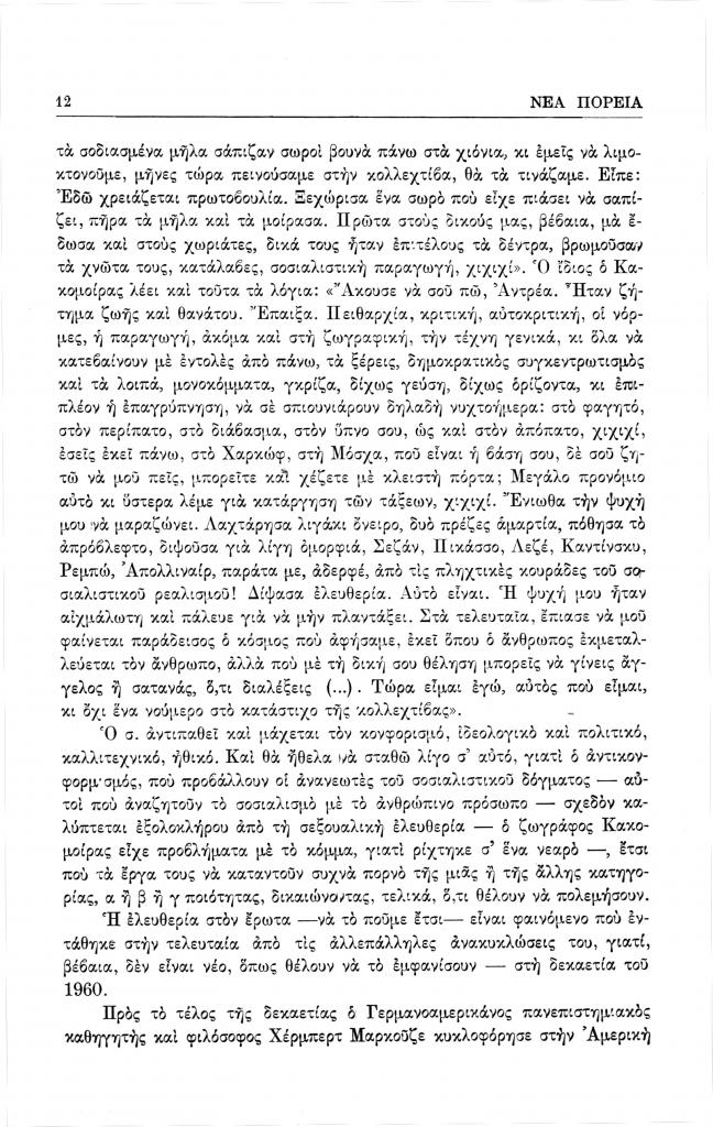 , «Η σύγχρονη ελληνική πεζογραφία. Στρατή Τσίρκα, Χαμένη άνοιξη», Νέα Πορεία, τόμ. 24, τχ. 275-279 (Ιανουάριος-Μάιος 1978), σ. 8-14
