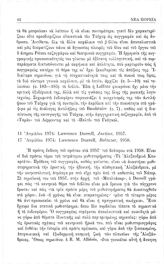 Σαχίνης Απόστολος, «Sophie Laffitte, Tchekhov par lui-même (από τα Τετράδια κριτικής)», Νέα Πορεία, τόμ. 24, τχ. 280-283 (Ιούνιος-Σεπτέμβριος 1978), σ. 61-62