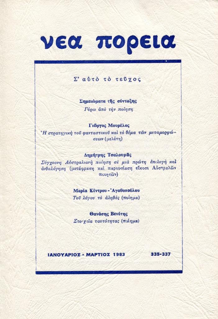 «#», Νέα Πορεία, τόμ. 29, τχ. 335-337 (Ιανουάριος-Μάρτιος 1983), σ. (εξώφυλλο)