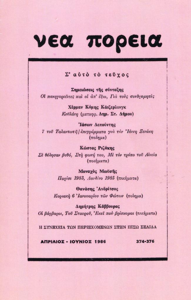 (Απρίλιος-Ιούνιος 1986), σ. (εξώφυλλο)