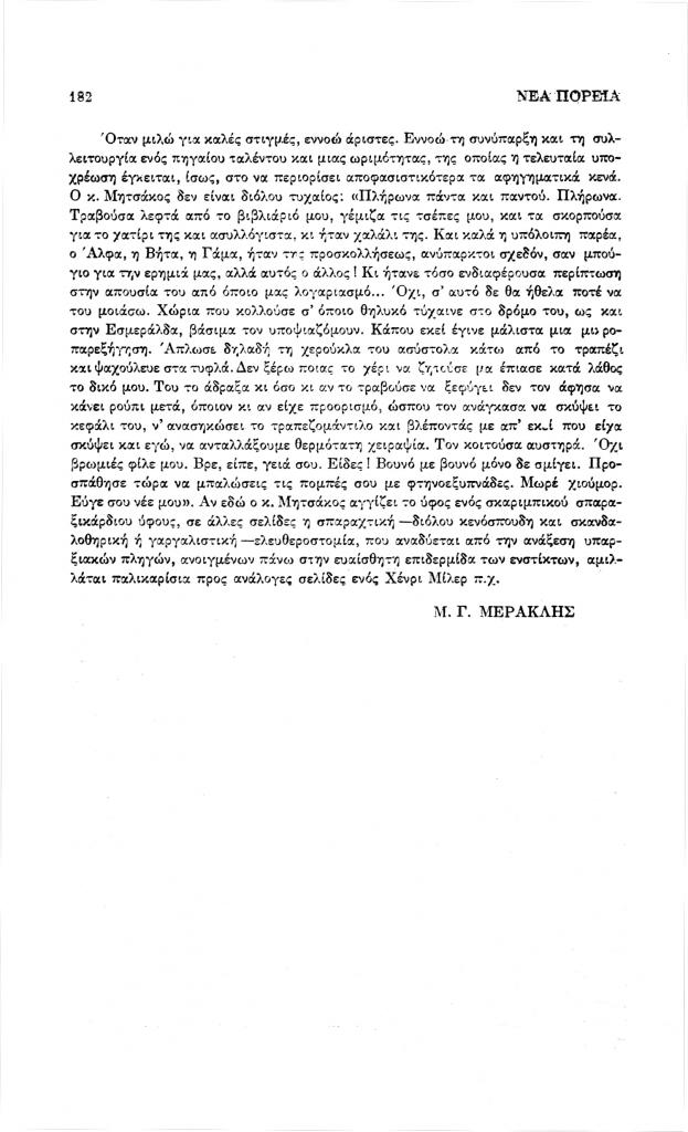 , «Μητσάκος, Αριστοτέλης, Του απεσταλμένου μας, μυθιστόρημα», Νέα Πορεία, τόμ. 32, τχ. 381-382 (Νοέμβριος-Δεκέμβριος 1986), σ. 181-182