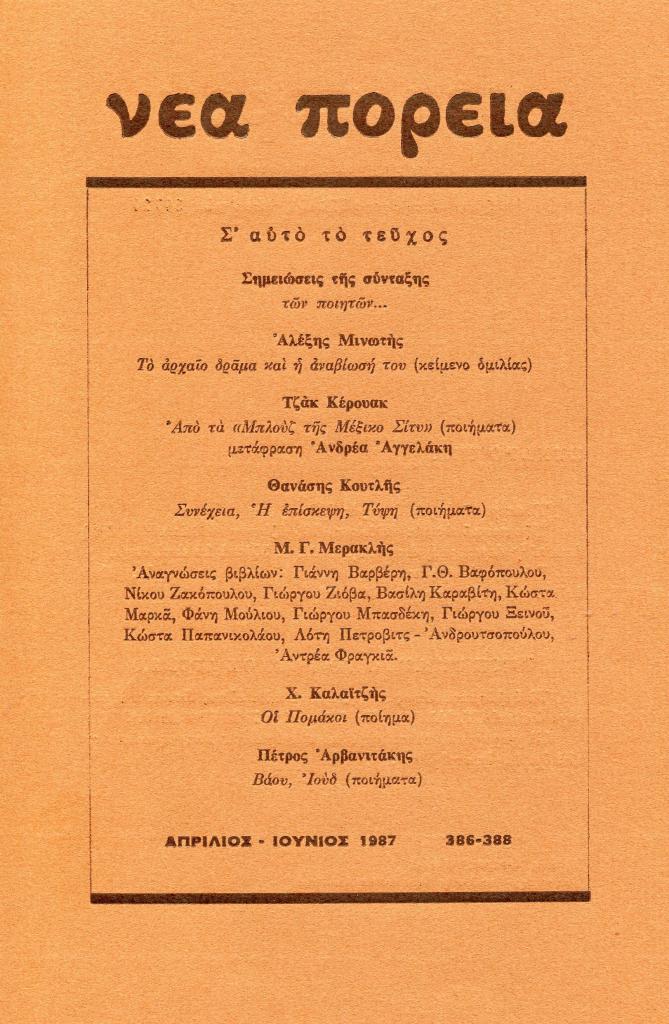 «#», Νέα Πορεία, τόμ. 33, τχ. 386-388 (Απρίλιος-Ιούνιος 1987), σ. (εξώφυλλο)