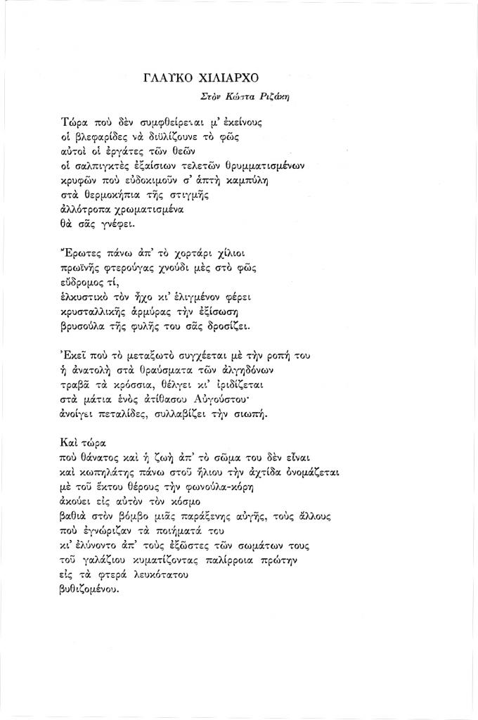 Τασούλης Θέμης, «Γλαύκο χιλίαρχο», Νέα Πορεία, τόμ. 35, τχ. 407-409 (Ιανουάριος-Μάρτιος 1989), σ. 11