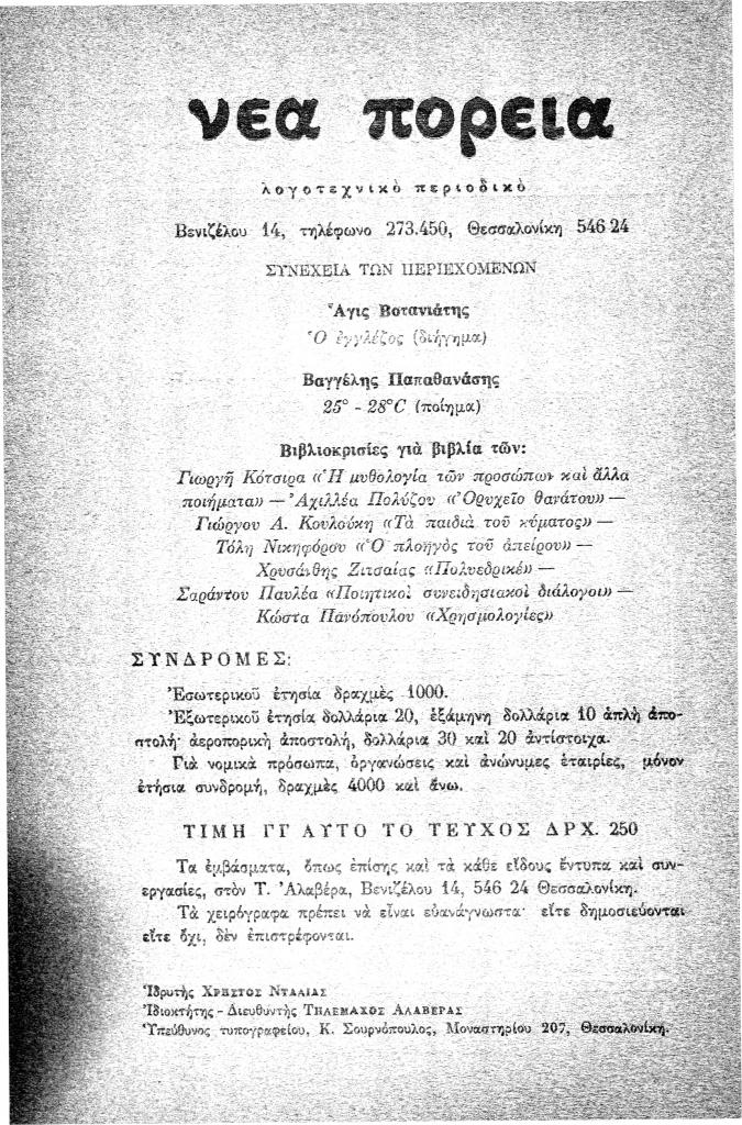 «#», Νέα Πορεία, τόμ. 36, τχ. 419-421 (Ιανουάριος-Μάρτιος 1990), σ. (εσώφυλλο)