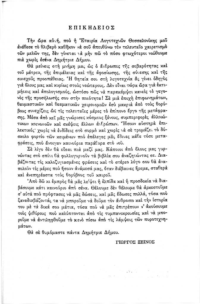 Ξεινός Γιώργος, «Επικήδειος», Νέα Πορεία, τόμ. 36, τχ. 425-428 (Ιούλιος-Οκτώβριος 1990), σ. 99