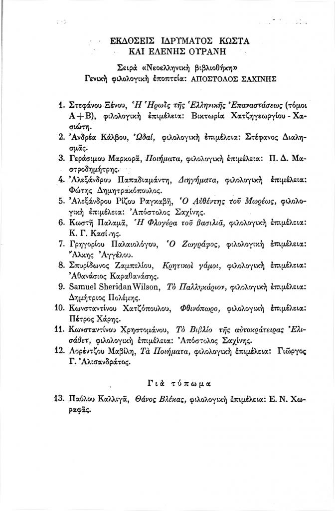 «Εκδόσεις Ιδρύματος Κώστα και Ελένης Ουράνη», Νέα Πορεία, τόμ. 36, τχ. 425-428 (Ιούλιος-Οκτώβριος 1990), σ. 144