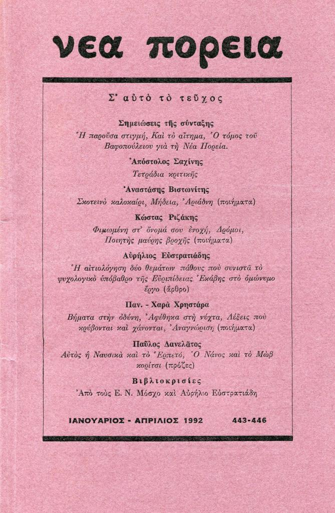 (Ιανουάριος-Απρίλιος 1992), σ. (εξώφυλλο)