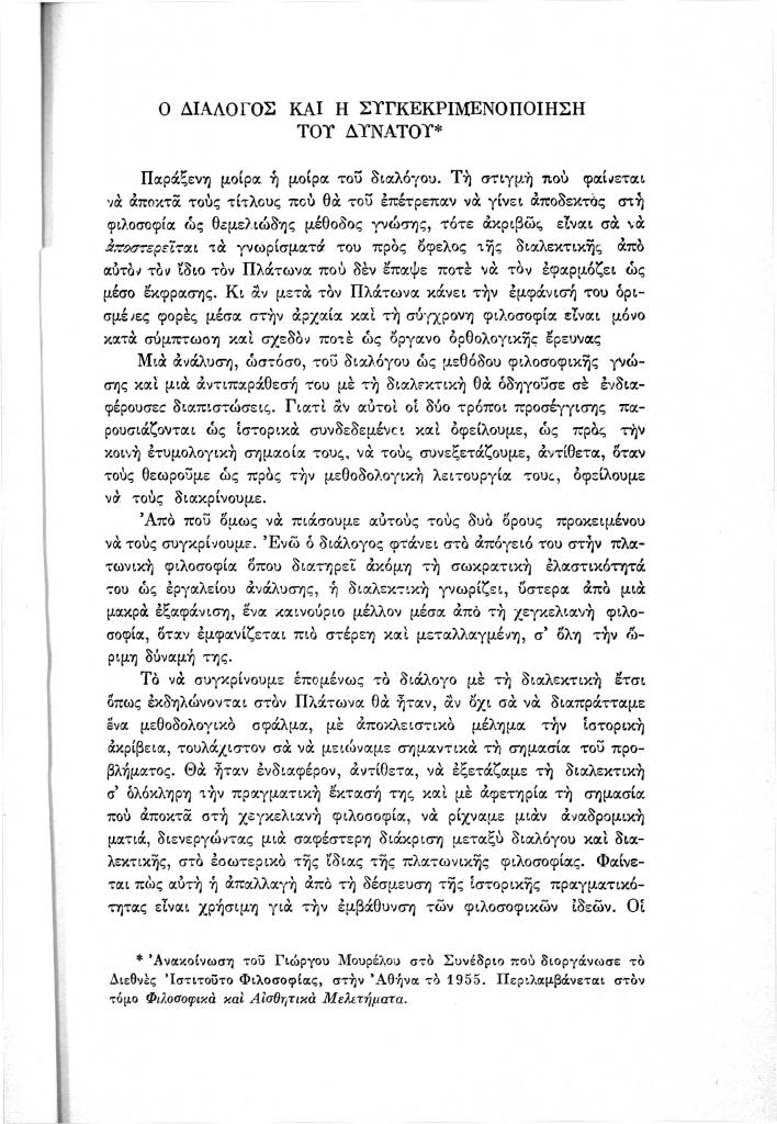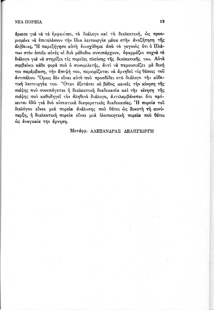 , «Ο διάλογος και η συγκεκριμενοποίηση του δυνατού», Νέα Πορεία, τόμ. 40, τχ. 467-470 (Ιανουάριος-Απρίλιος 1994), σ. 13-19