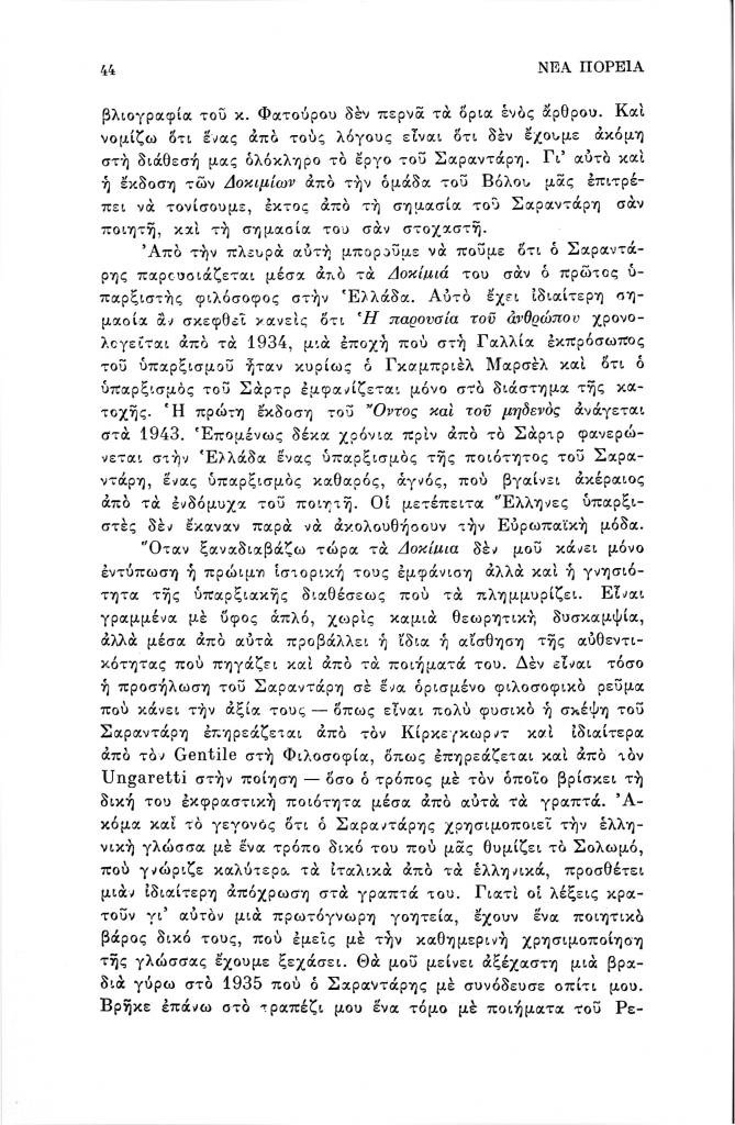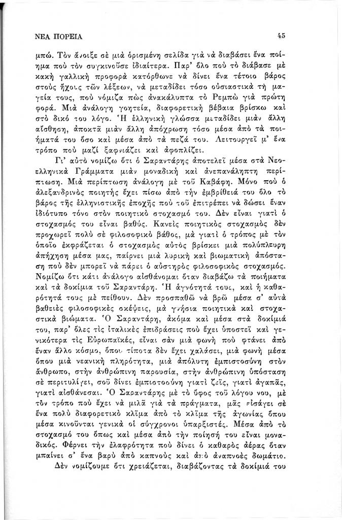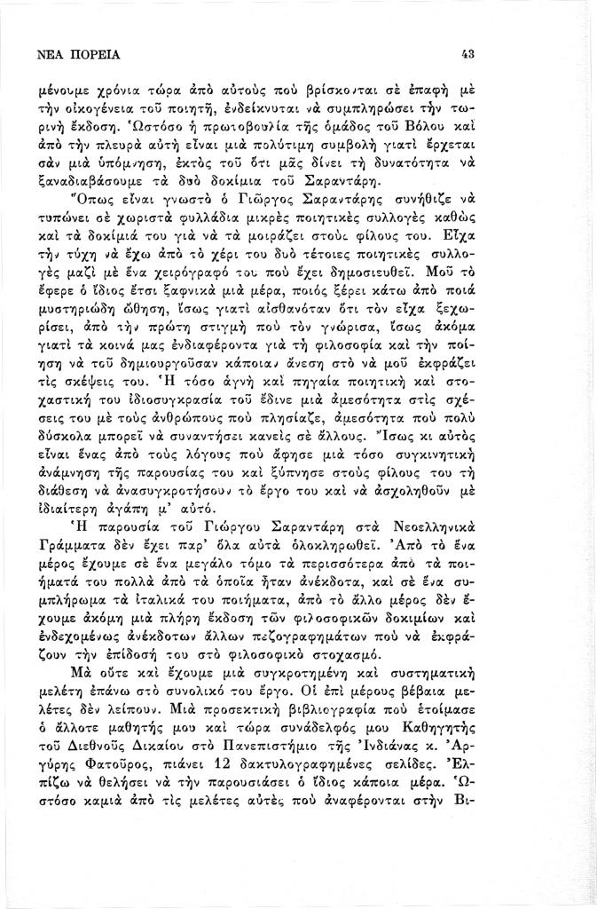 Μουρέλος Γιώργος, «Γιώργου Σαραντάρη, Δοκίμια», Νέα Πορεία, τόμ. 40, τχ. 467-470 (Ιανουάριος-Απρίλιος 1994), σ. 42-46