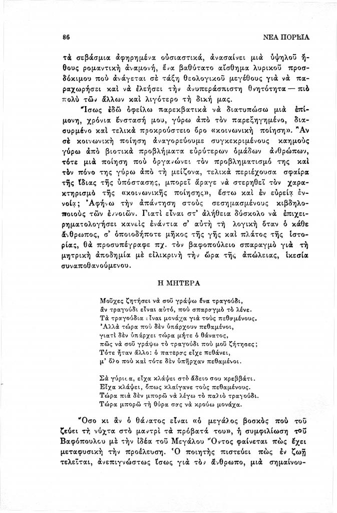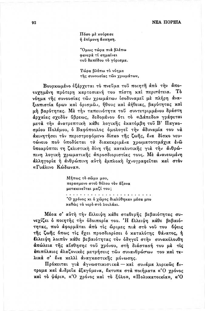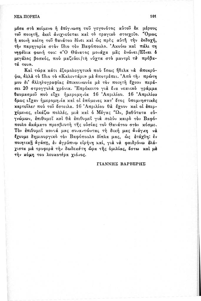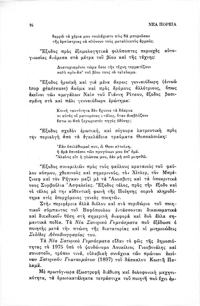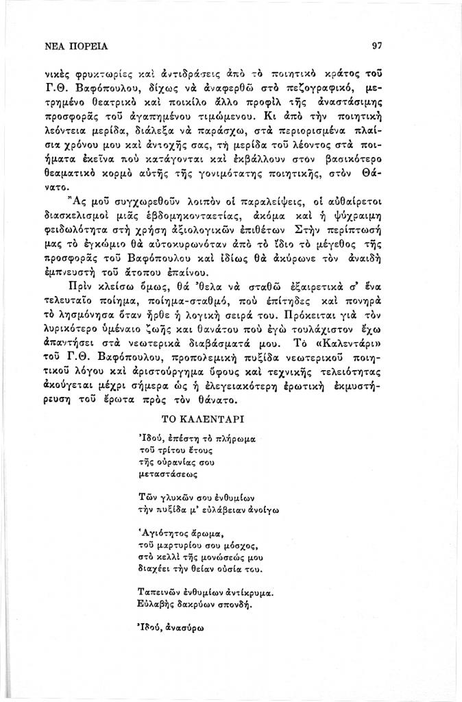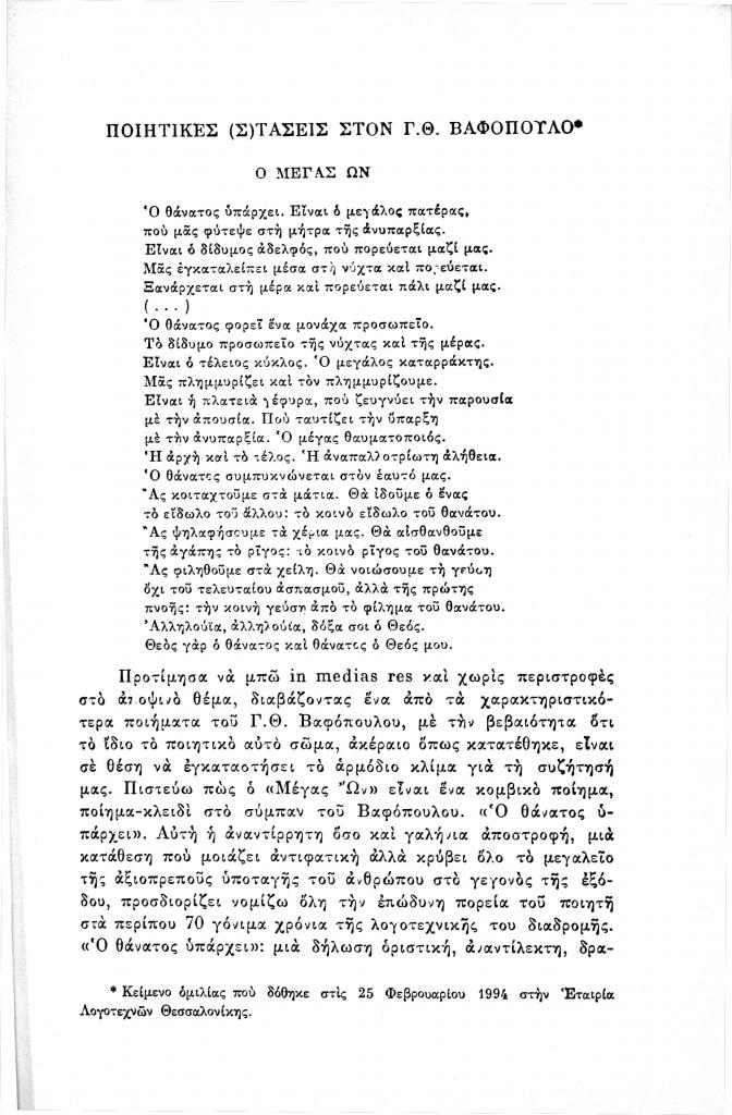 Βαρβέρης Γιάννης, «Ποιητικές (σ)τάσεις στον Γ.Θ. Βαφόπουλο», Νέα Πορεία, τόμ. 40, τχ. 471-473 (Μάιος-Ιούλιος 1994), σ. 83-101