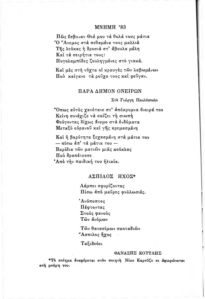 Κουτλής Θανάσης, «Άσπιλος ήχος», Νέα Πορεία, τόμ. 40, τχ. 474-476 (Αύγουστος-Οκτώβριος 1994), σ. 214