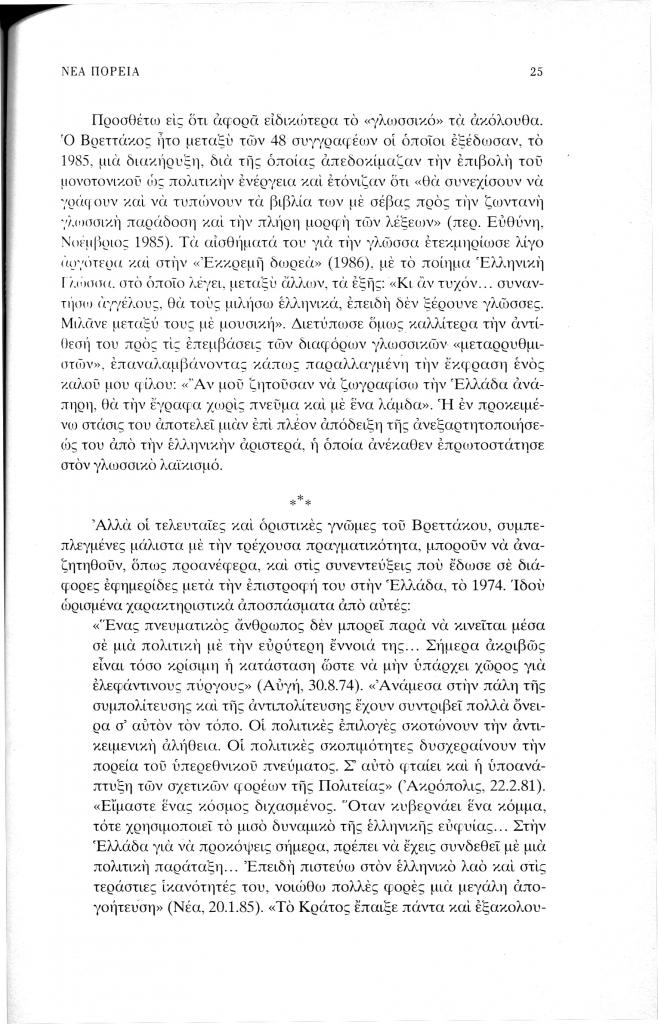 , «Νικηφόρος Βρεττάκος. Η ιδεολογική πορεία του», Νέα Πορεία, τόμ. 42, τχ. 491-493 (Ιανουάριος-Μάρτιος 1996), σ. 7-26