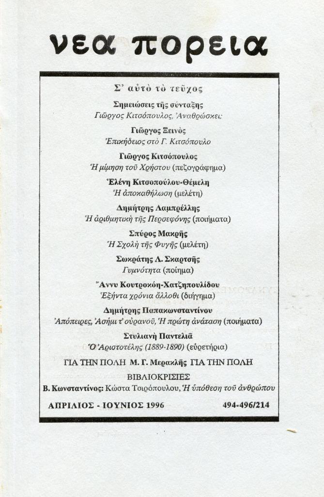 (Απρίλιος-Ιούνιος 1996), σ. (εξώφυλλο)