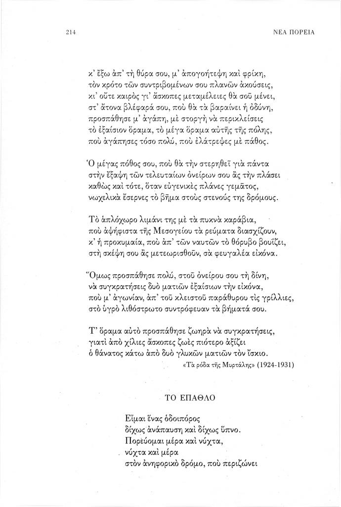 Βαφόπουλος Γεώργιος Θ., «Το έπαθλο», Νέα Πορεία, τόμ. 42, τχ. 500-502 (Οκτώβριος-Δεκέμβριος 1996), σ. 214-215