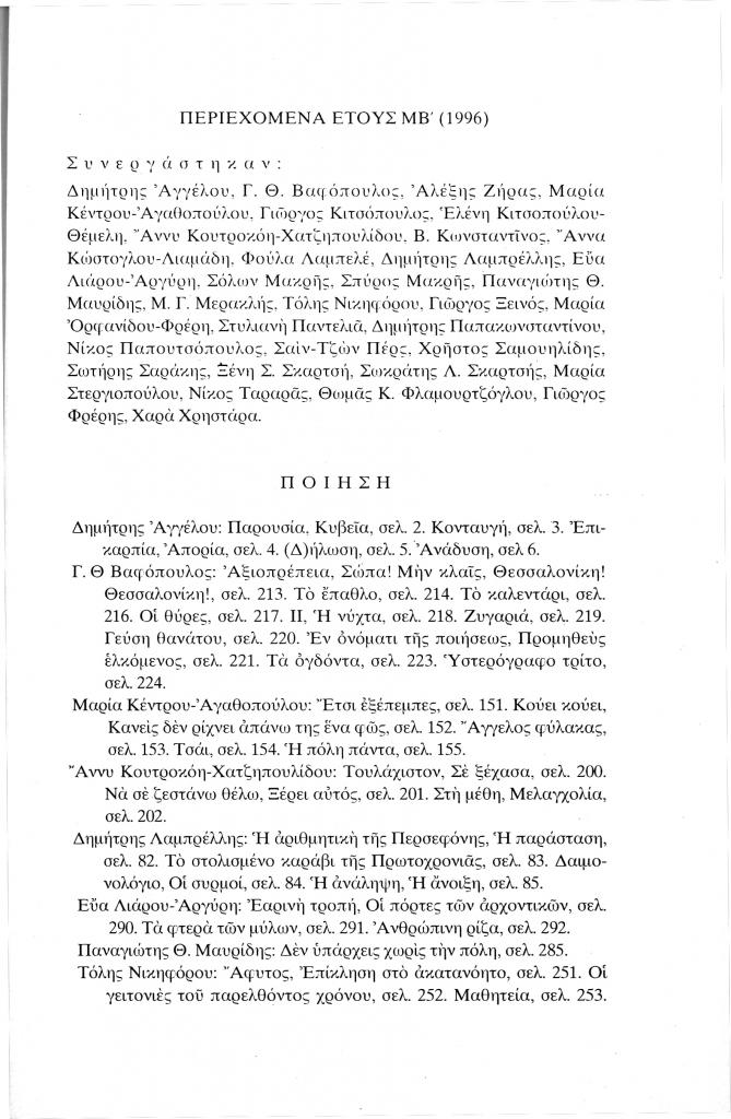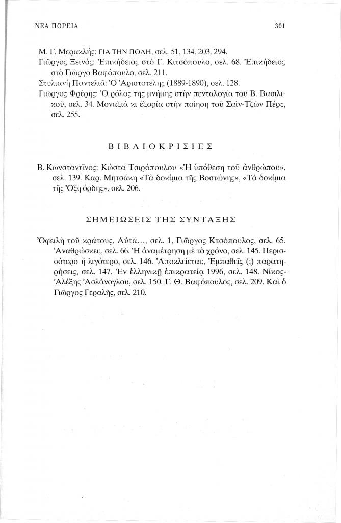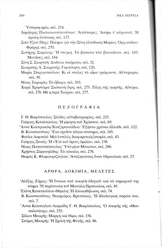 «Περιεχόμενα ΜΒ΄ τόμου (1996)», Νέα Πορεία, τόμ. 42, τχ. 500-502 (Οκτώβριος-Δεκέμβριος 1996), σ. 299-301