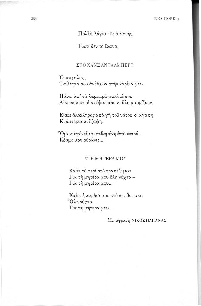 Lasker-Schüler Else, «Στο Χανς Άνταλμπερντ», Νέα Πορεία, τόμ. 43, τχ. 512-514 (Οκτώβριος-Δεκέμβριος 1997), σ. 286