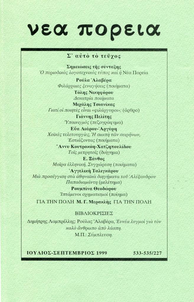 (Ιούλιος-Σεπτέμβριος 1999), σ. (εξώφυλλο)