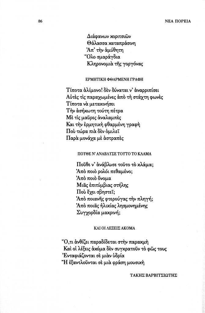 , «Θάλασσα μενεξεδένια-θάλασσα καταπράσινη»,