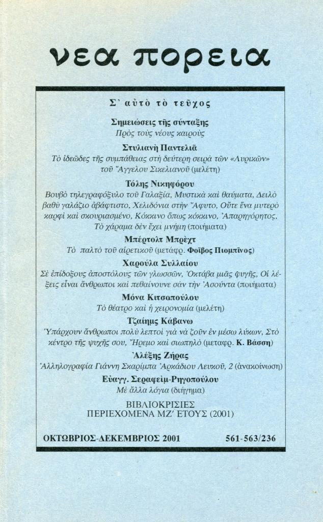 (Οκτώβριος-Δεκέμβριος 2001), σ. (εξώφυλλο)