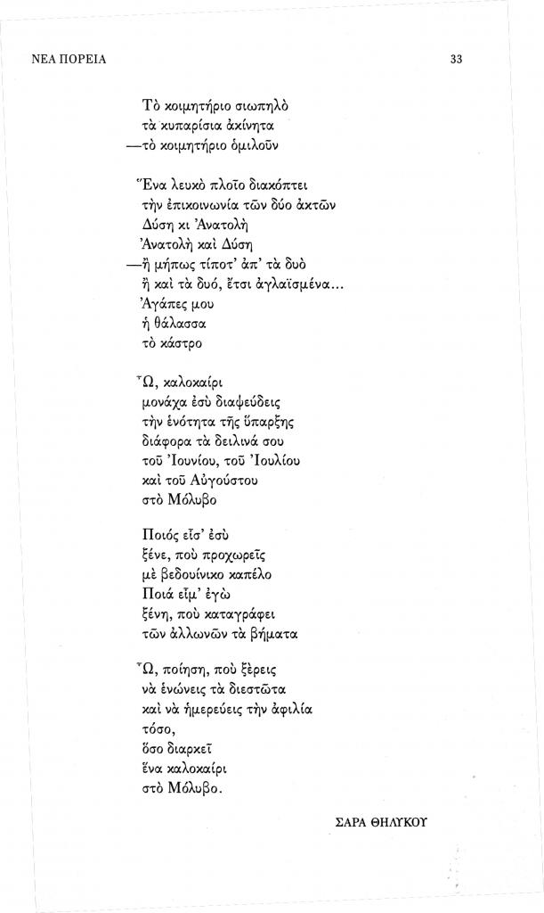 Θηλυκού Σάρα, «Μόλυβος 2000», Νέα Πορεία, τόμ. 49, τχ. 575-577 (Ιανουάριος-Μάρτιος 2003), σ. 30-33