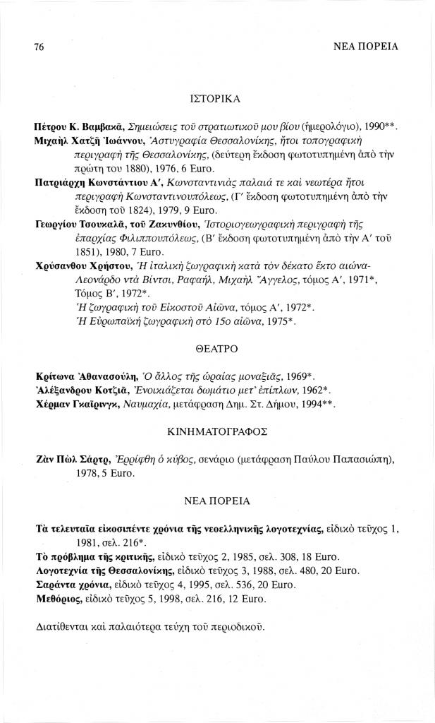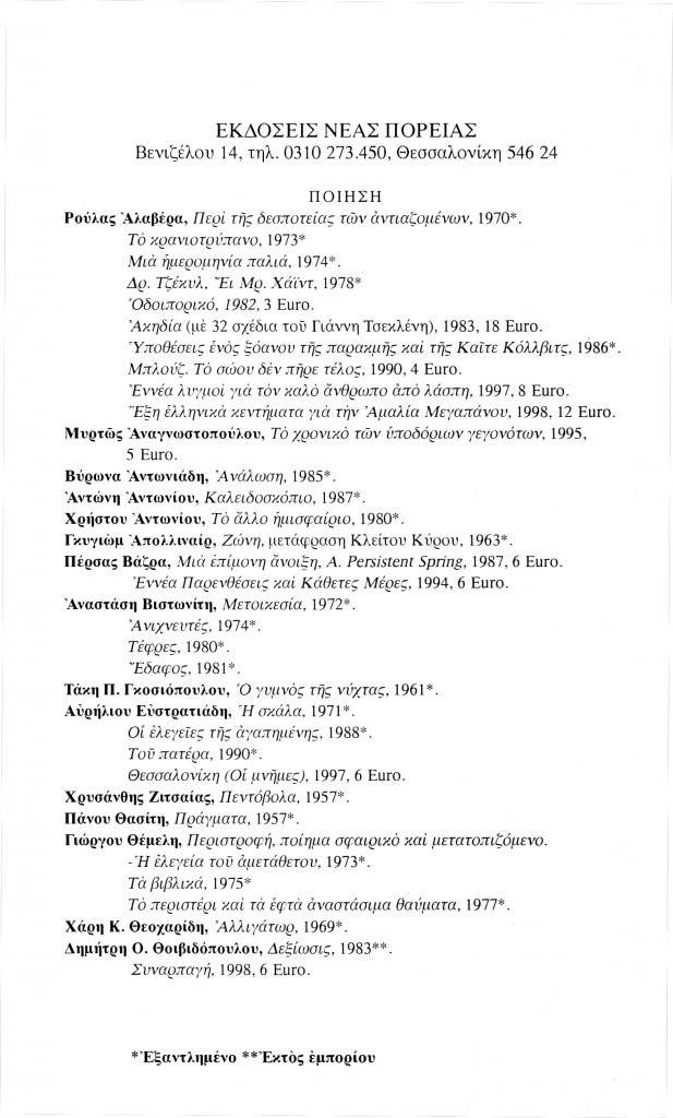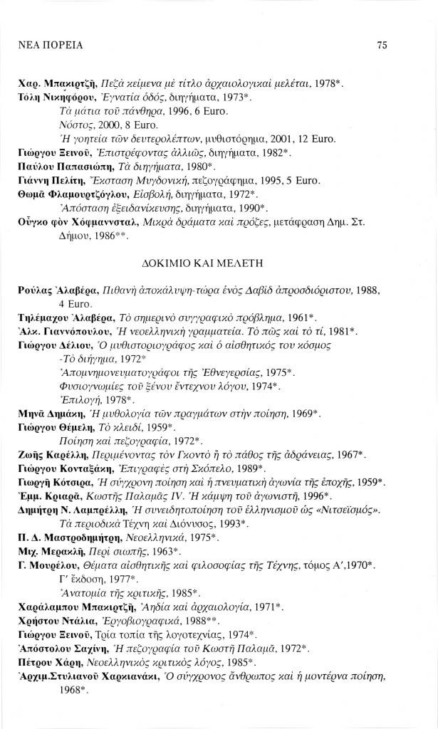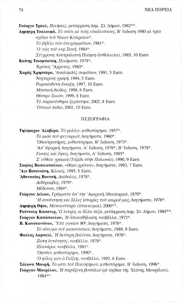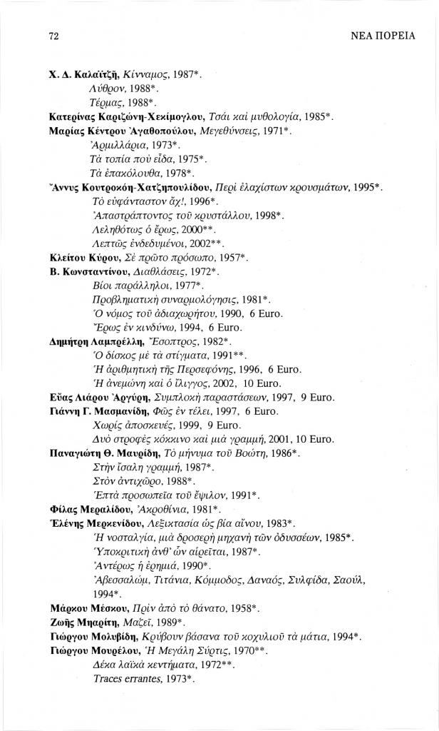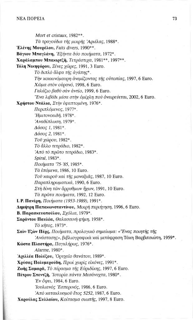 «Εκδόσεις Νέας Πορείας», Νέα Πορεία, τόμ. 49, τχ. 575-577 (Ιανουάριος-Μάρτιος 2003), σ. 71-76