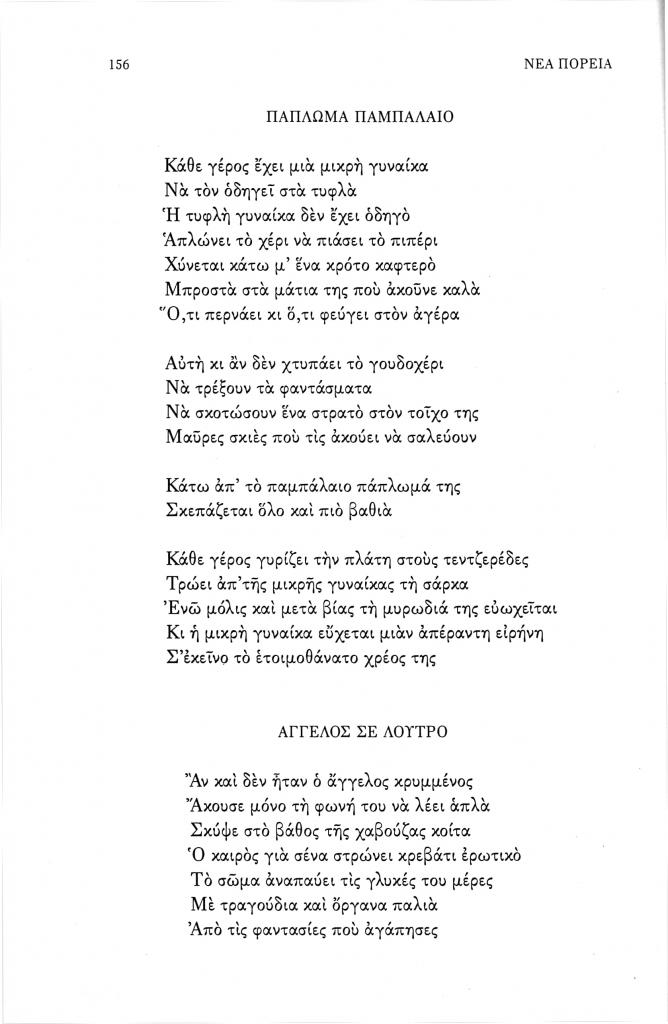 Κέντρου-Αγαθοπούλου Μαρία, «Άγγελος σε λουτρό», Νέα Πορεία, τόμ. 50, τχ. 590-592 (Απρίλιος-Ιούνιος 2004), σ. 156-157