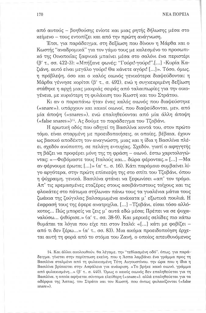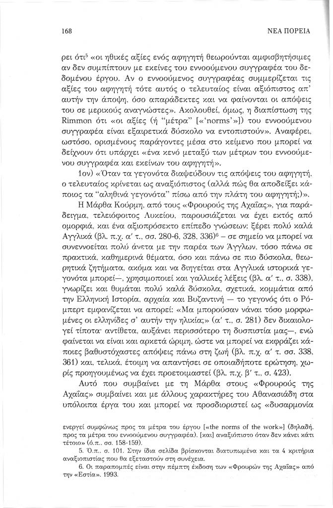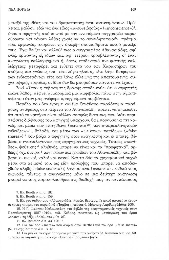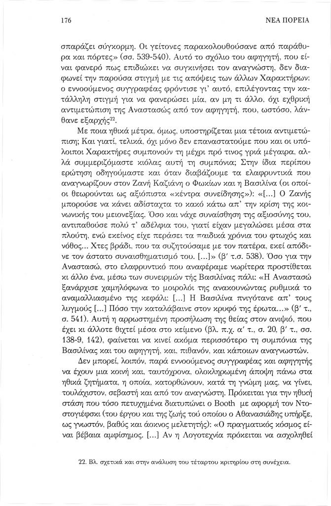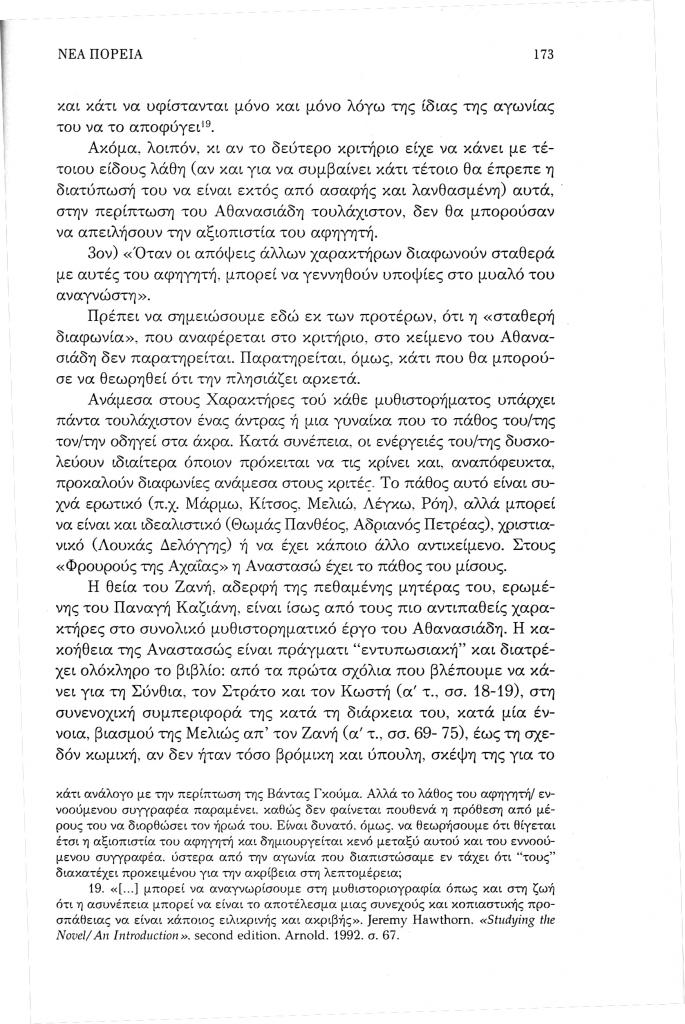 Τσούπρου Σταυρούλα, «Αξιόπιστος αφηγητής και ηθική στάση», Νέα Πορεία, τόμ. 50, τχ. 590-592 (Απρίλιος-Ιούνιος 2004), σ. 167-179