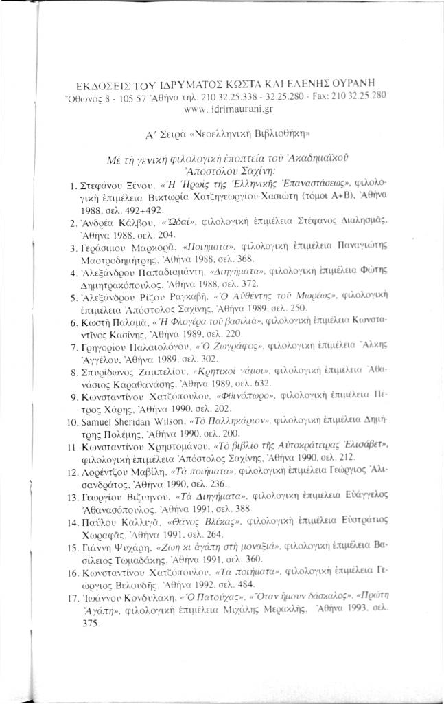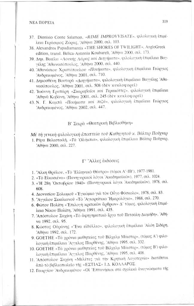 «Εκδόσεις Ιδρύματος Κώστα και Ελένης Ουράνη», Νέα Πορεία, τόμ. 51, τχ. 608-610 (Οκτώβριος-Δεκέμβριος 2005), σ. 317-320