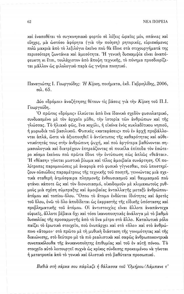 , «Χρύσα Ευστ. Αλεξοπούλου, Βορείως του Νότου, ποιήματα», Νέα Πορεία, τόμ. 53, τχ. 623-625 (Ιανουάριος-Μάρτιος 2007), σ. 61-62