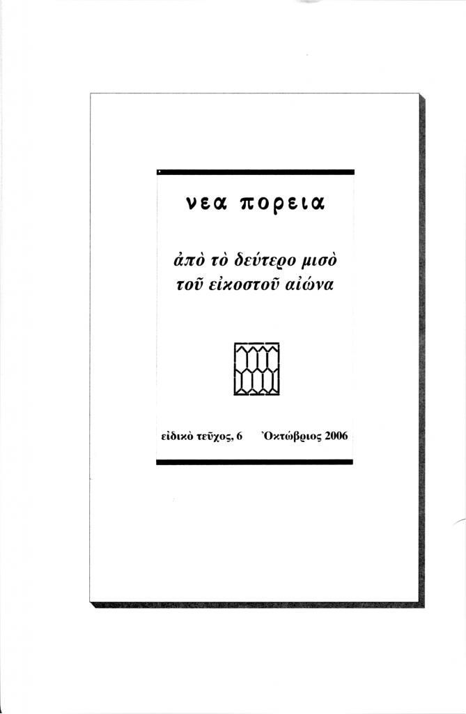 «Νέα Πορεία: από το δεύτερο μισό του εικοστού αιώνα», Νέα Πορεία, τόμ. 53, τχ. 623-625 (Ιανουάριος-Μάρτιος 2007), σ. 80