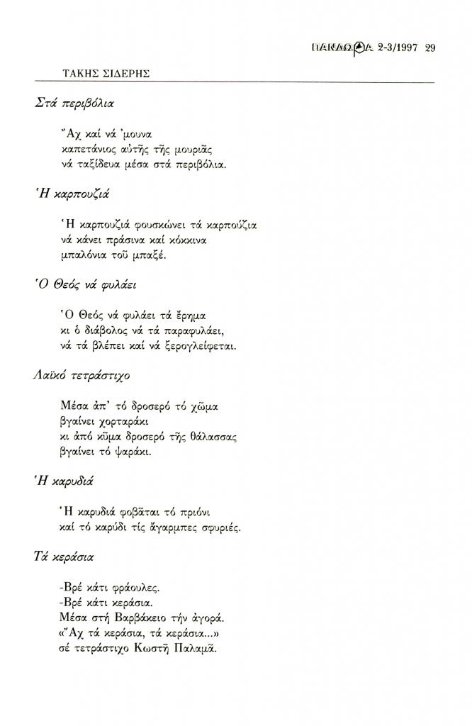 Σιδέρης Τάκης, «Η καρυδιά», Πανδώρα, τχ. 2-3 ( 1997), σ. 29